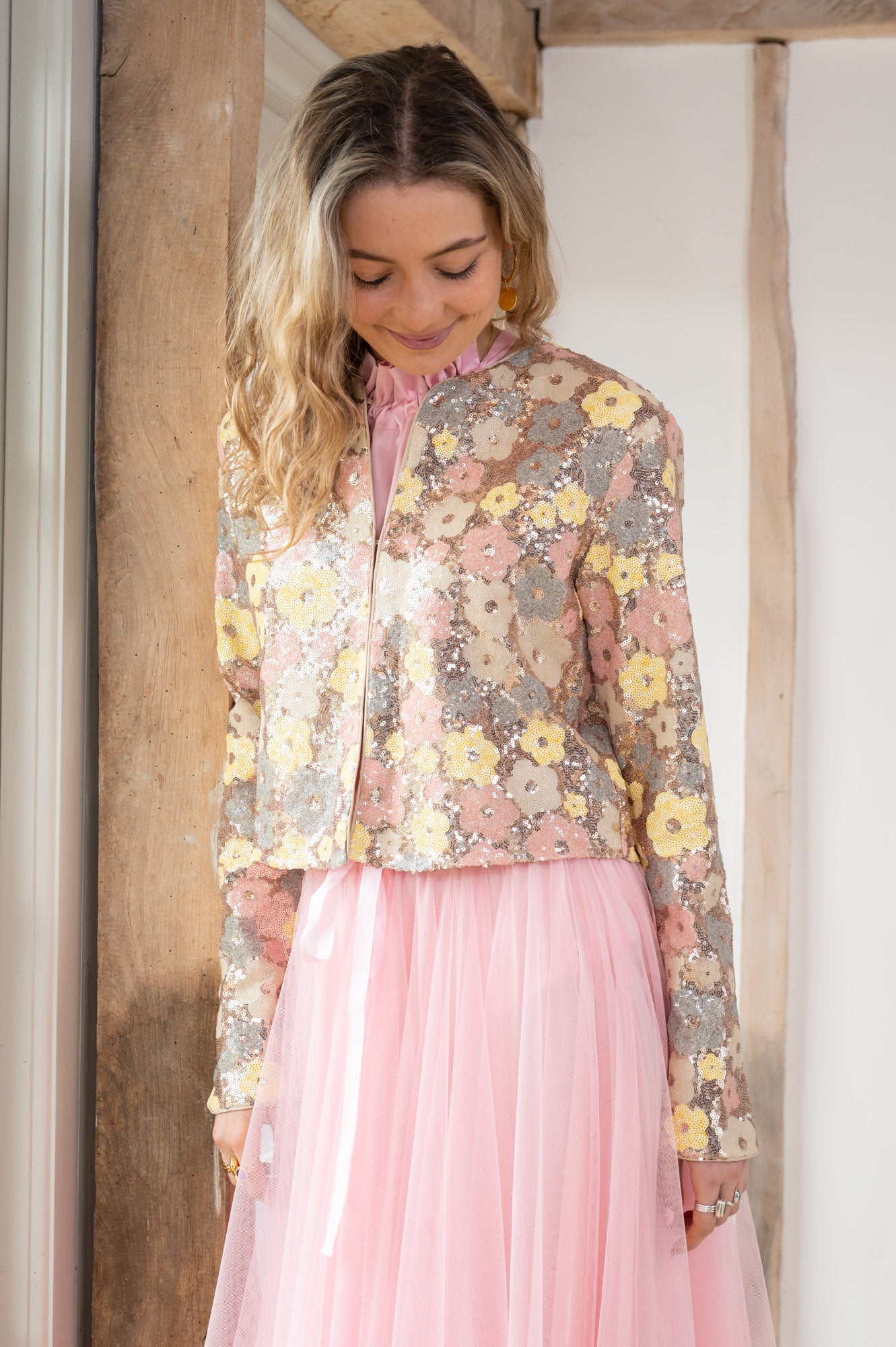 - Shell is made up of a floral design in a choice of colourways with tiny sequins