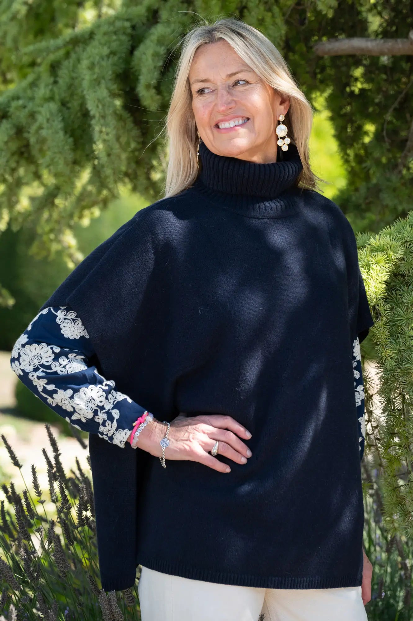Over-sized, roll neck slipover. Wear loose for a relaxed look or belt her in with a wide belt for a more tailored look...