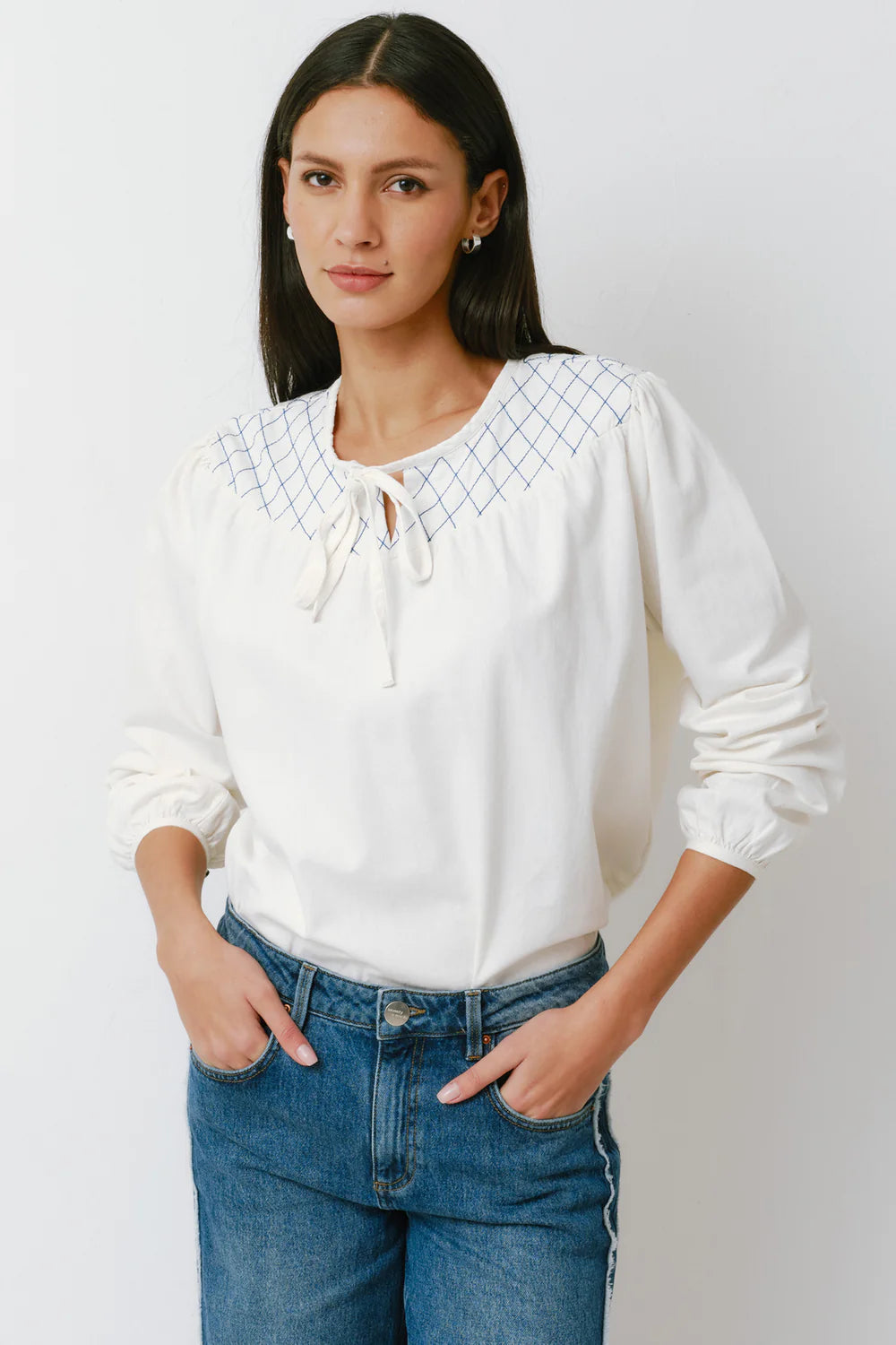 - Choose from Ecru with blue stitching or a Mid Vintage Denim Blue with ecru stitching