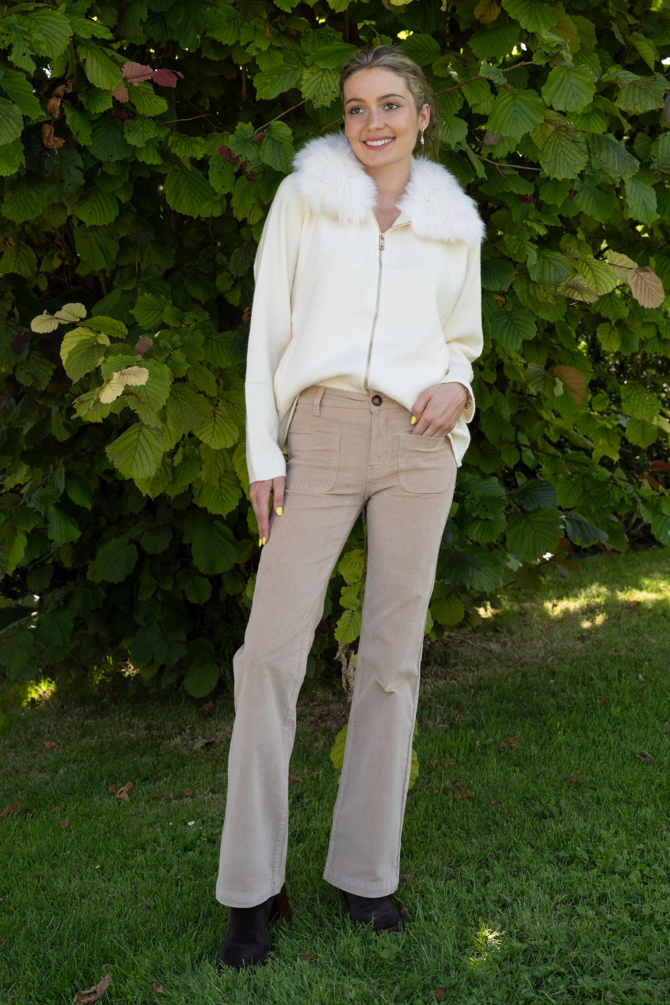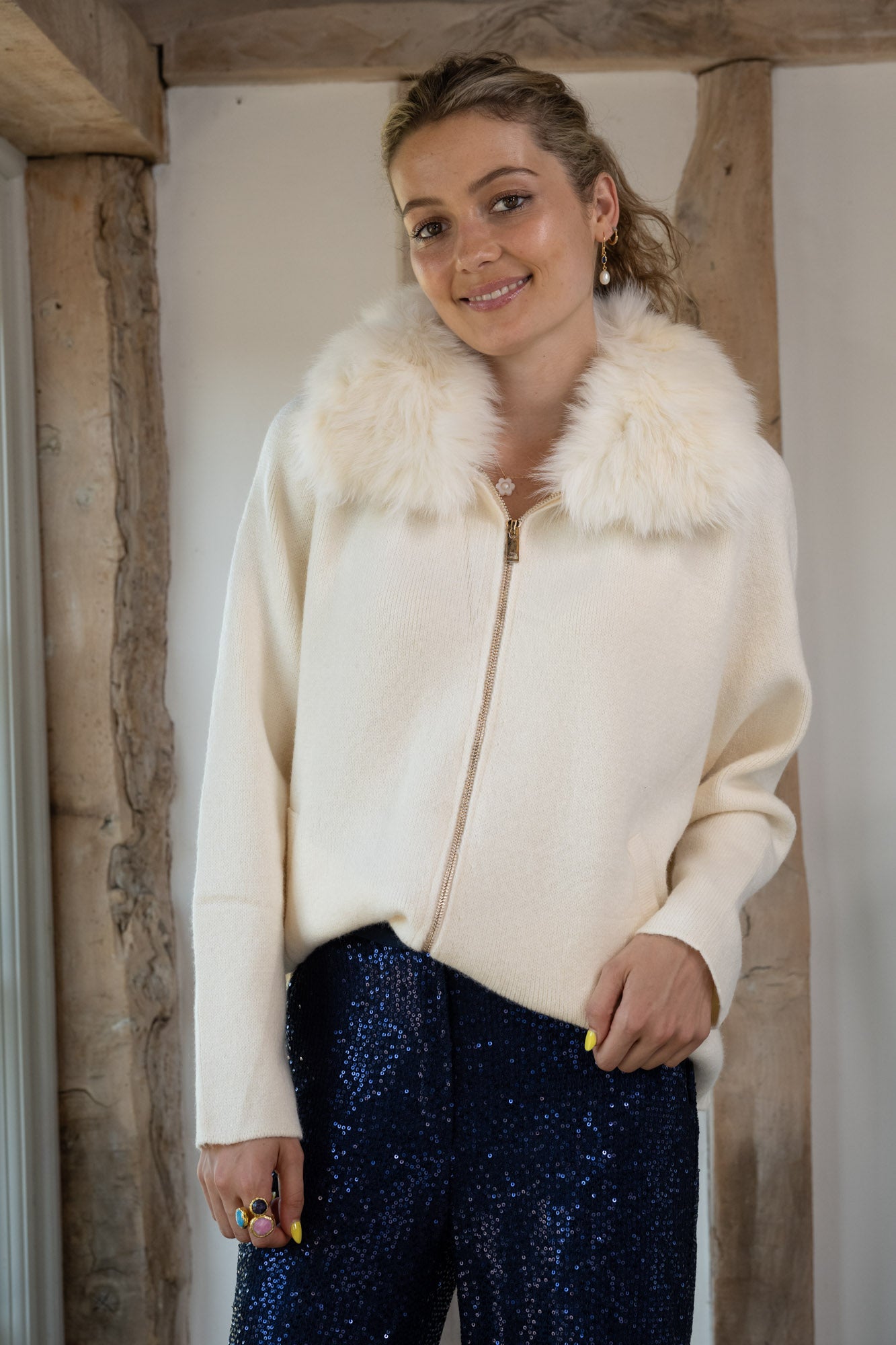 A zipped cashmere-mix cardigan with sumptuous faux fur collar that you might just live in this season.