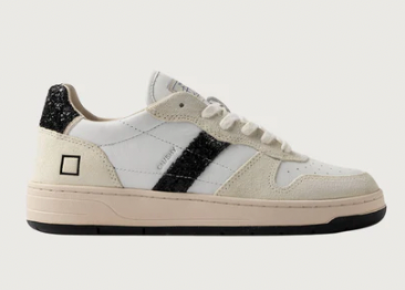 DATE Court Shiny White Glitter Black Trainers Shoes