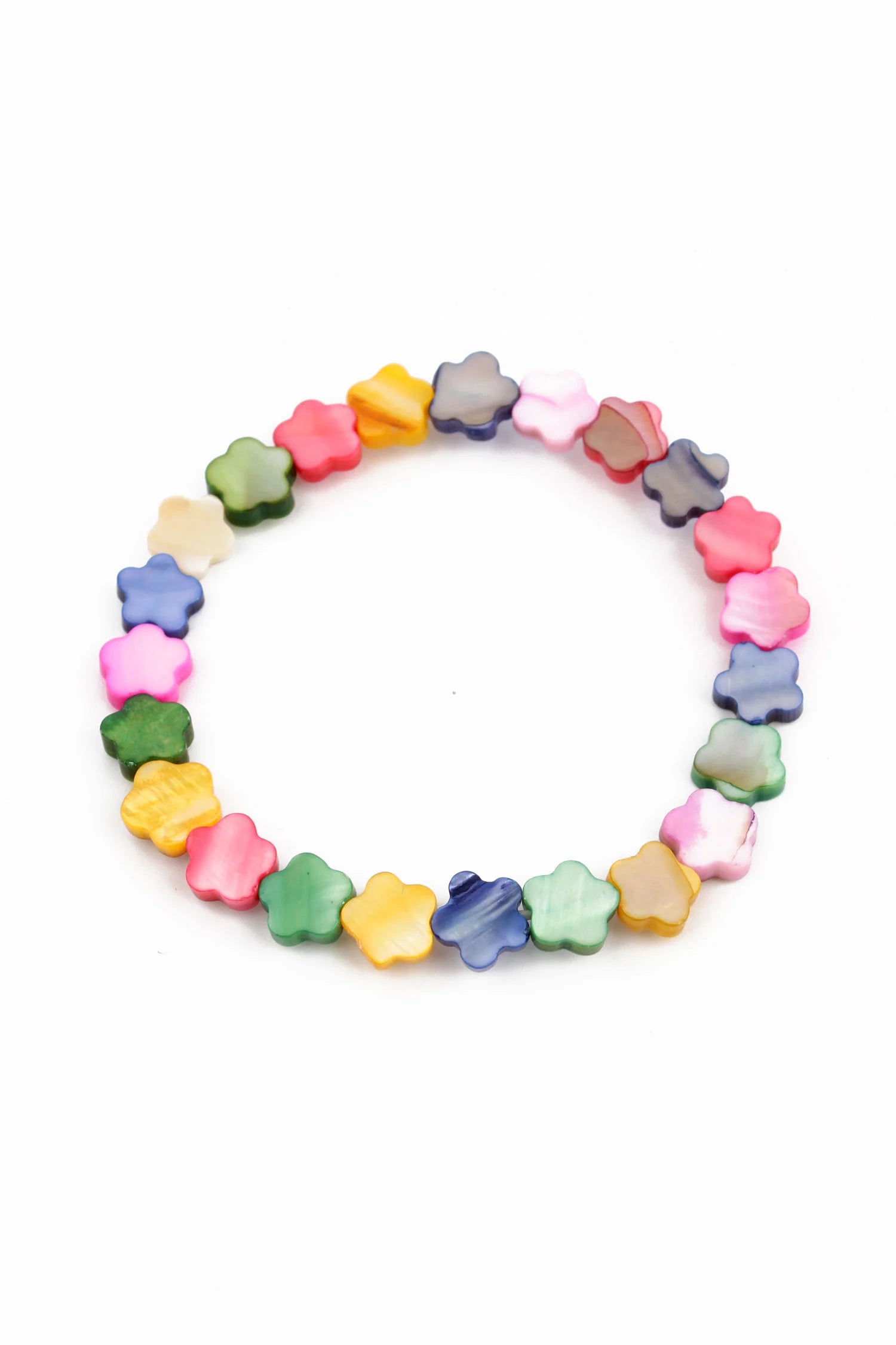 - Daisy-shaped mother of pearl beads in rainbow colours