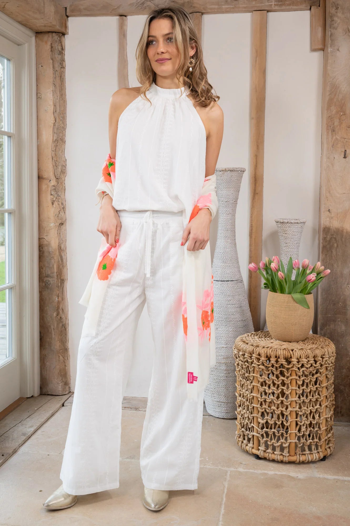 Cool, summer trousers in pure white cotton with white embroidery...