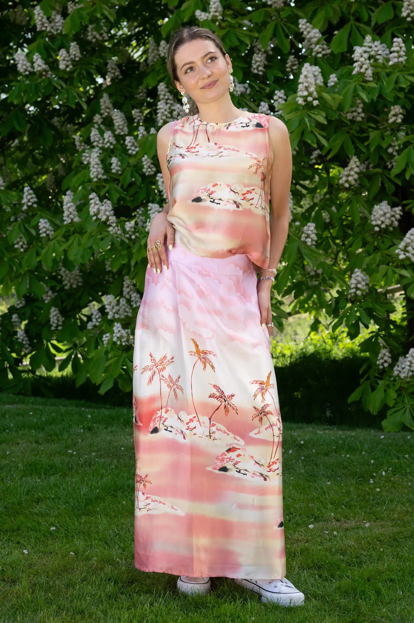 Simple but elegant, this is a skirt in a summer print in muted sunset shades ...