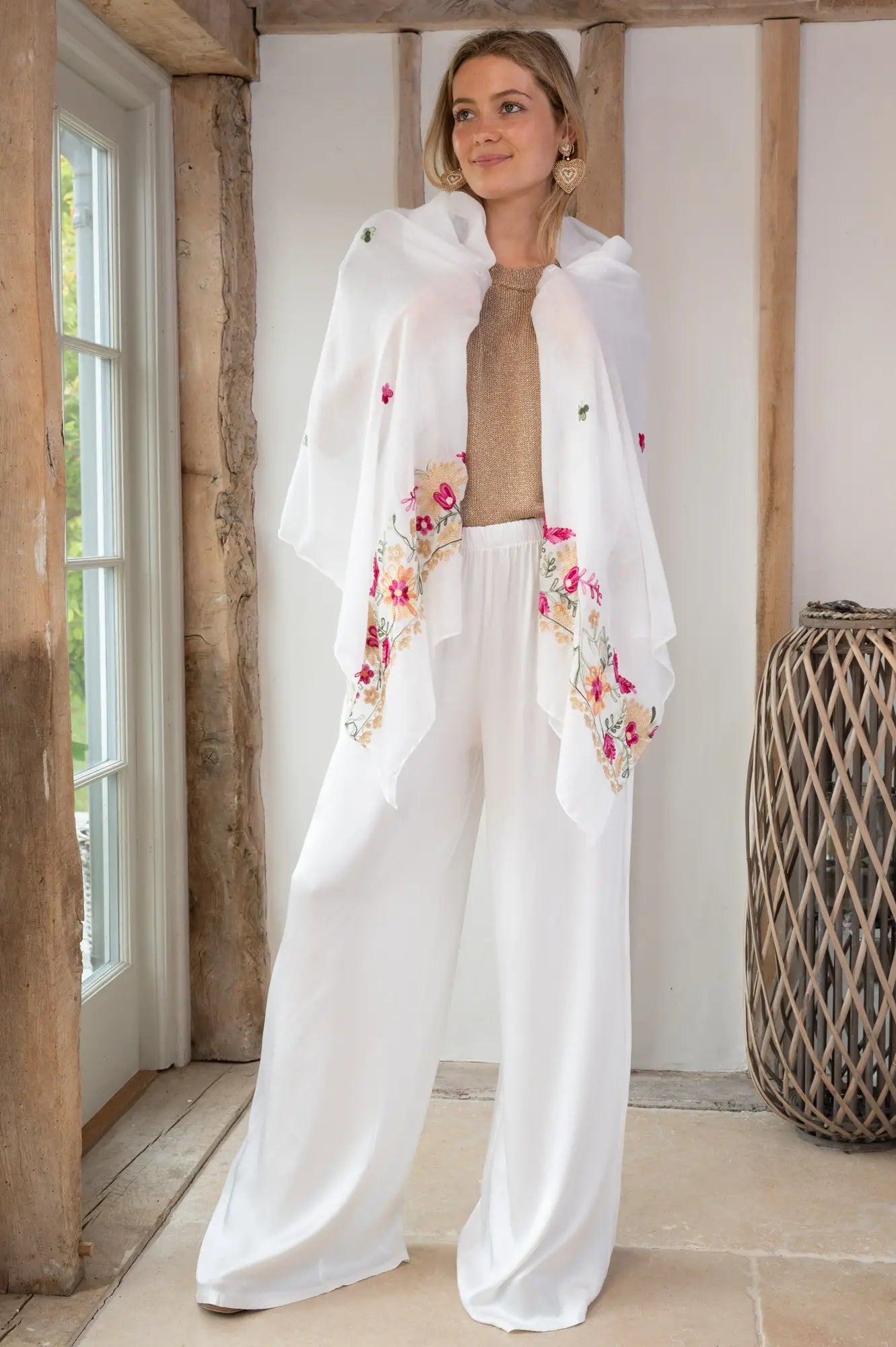 Beautifully embroidered summer scarf with a subtle hint of shimmer to catch the sunlight...