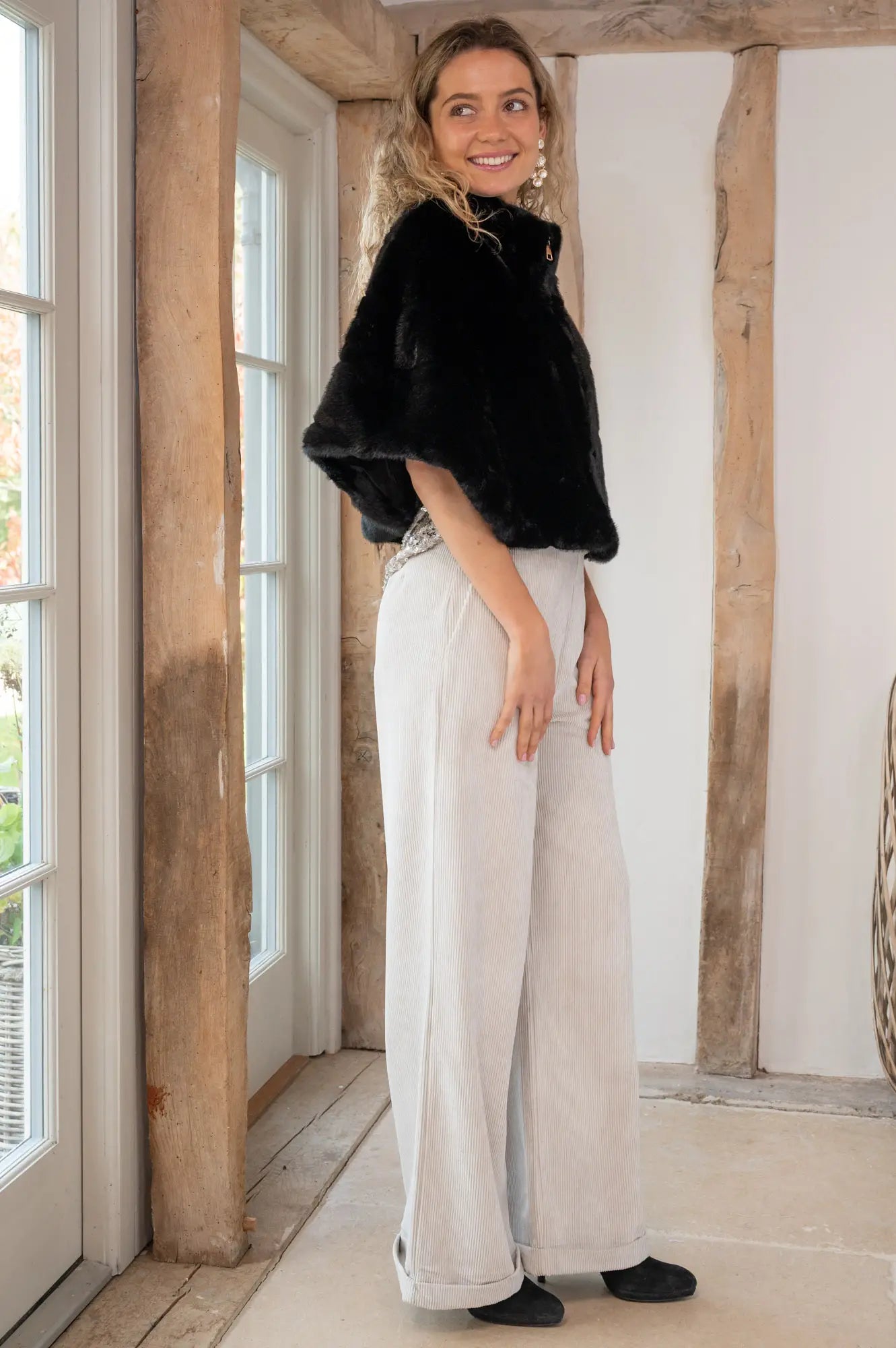 This is just the most gorgeous little faux fur cape. Perfect for wearing with trousers or a dress due to her neat cut...