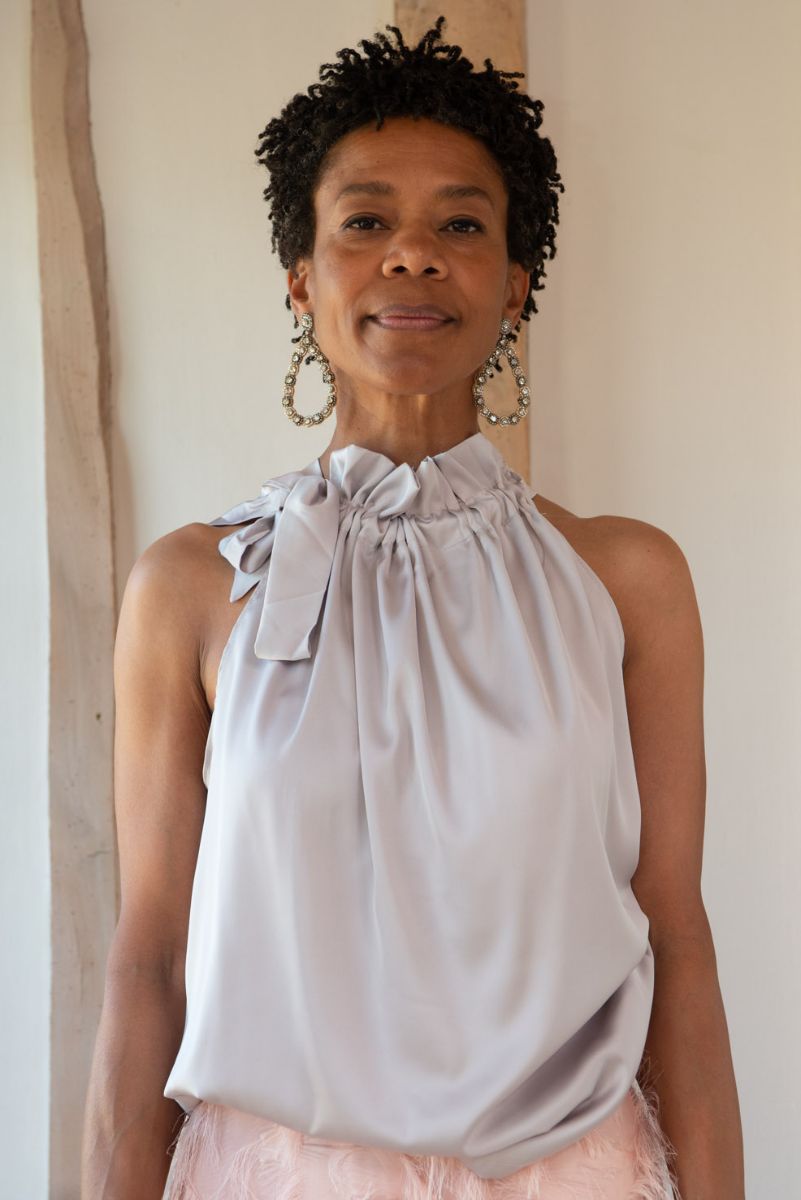 High tied neckline