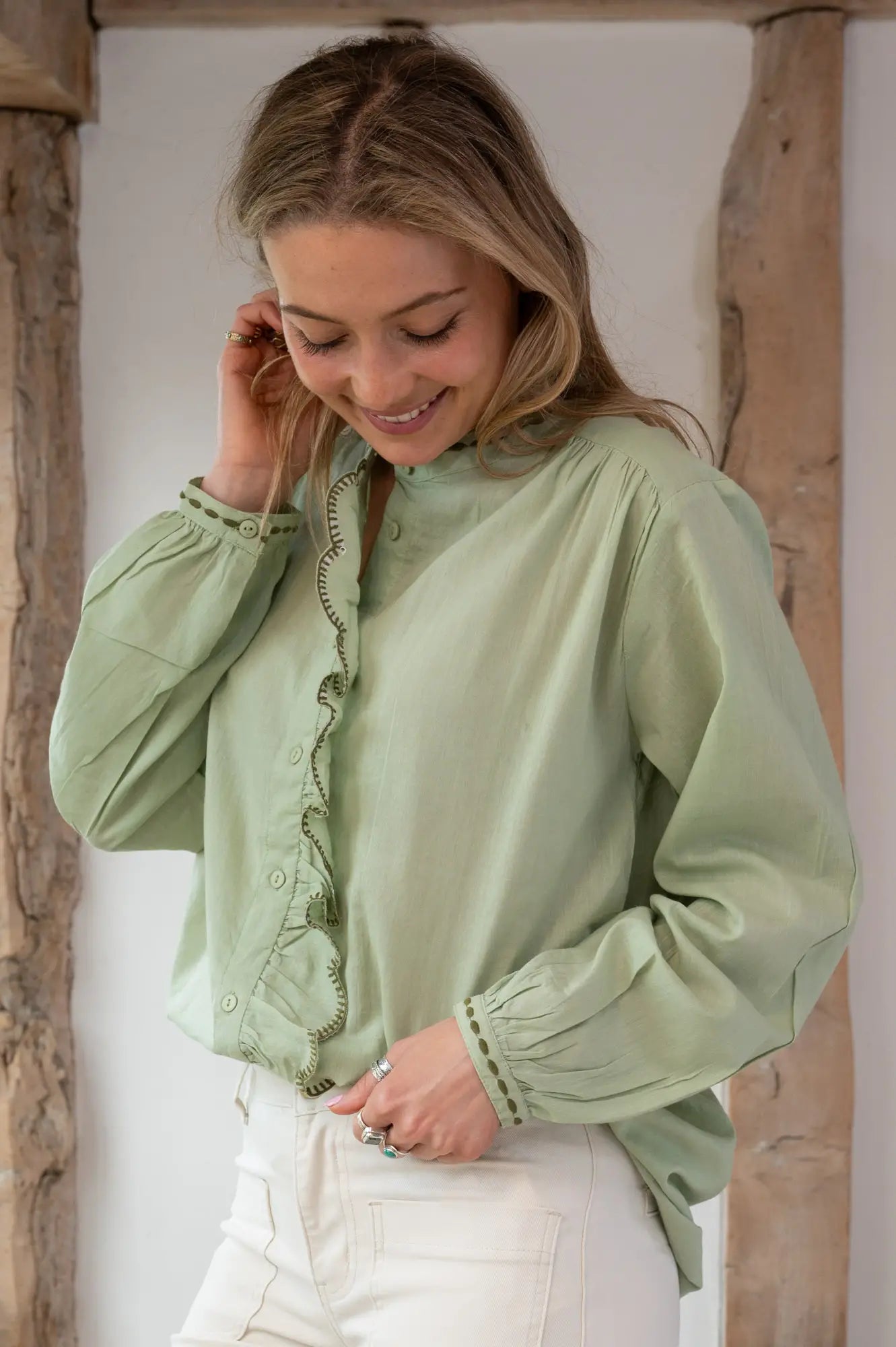 This gorgeous shirt in a very lovely shade of soft sage, has Spring written all over it...