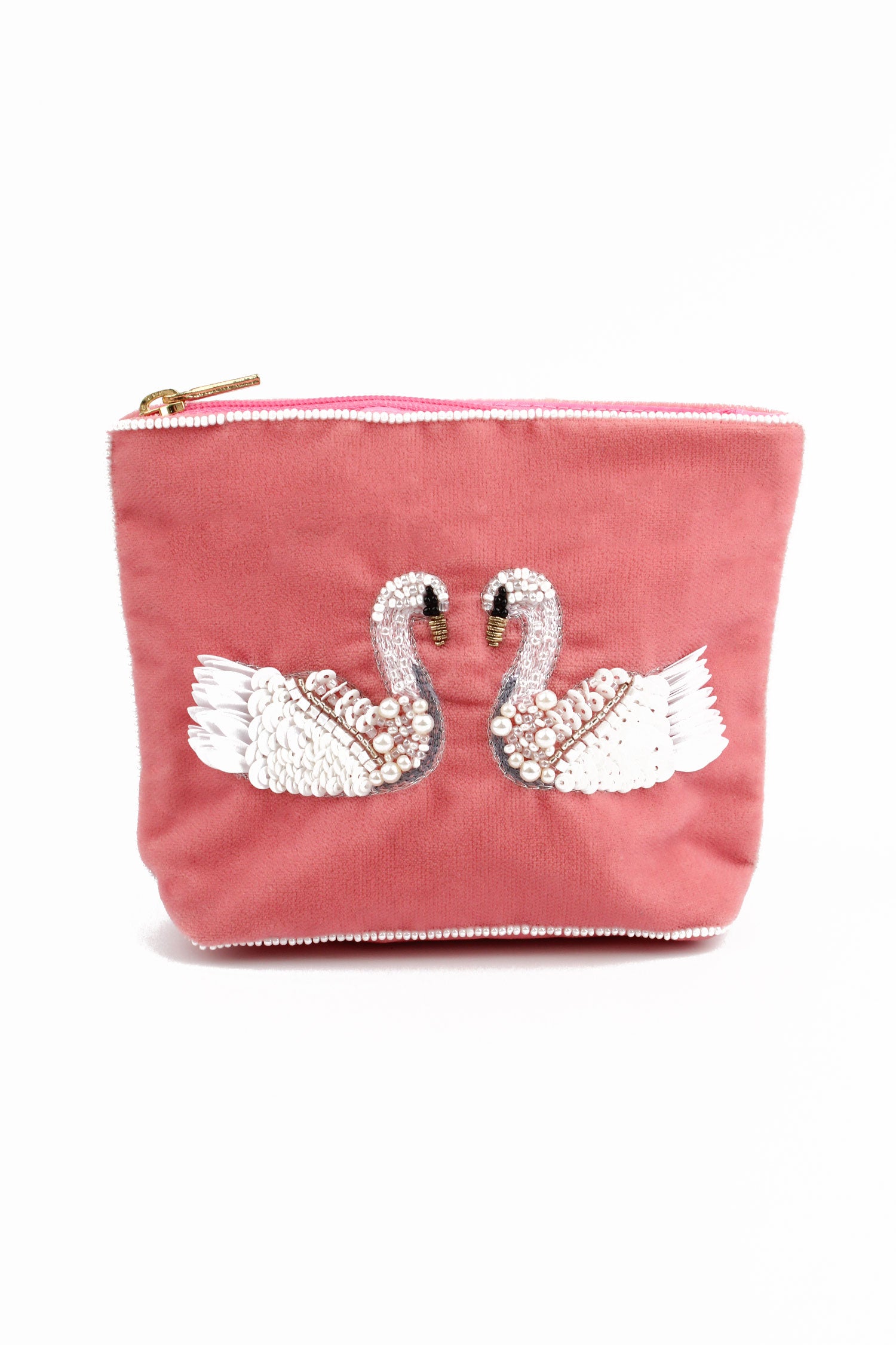 Pretty pink velvet pouches embellished with a stunning mirror swan design, adorned with shiny beads and sequins - they make the loveliest of gifts...