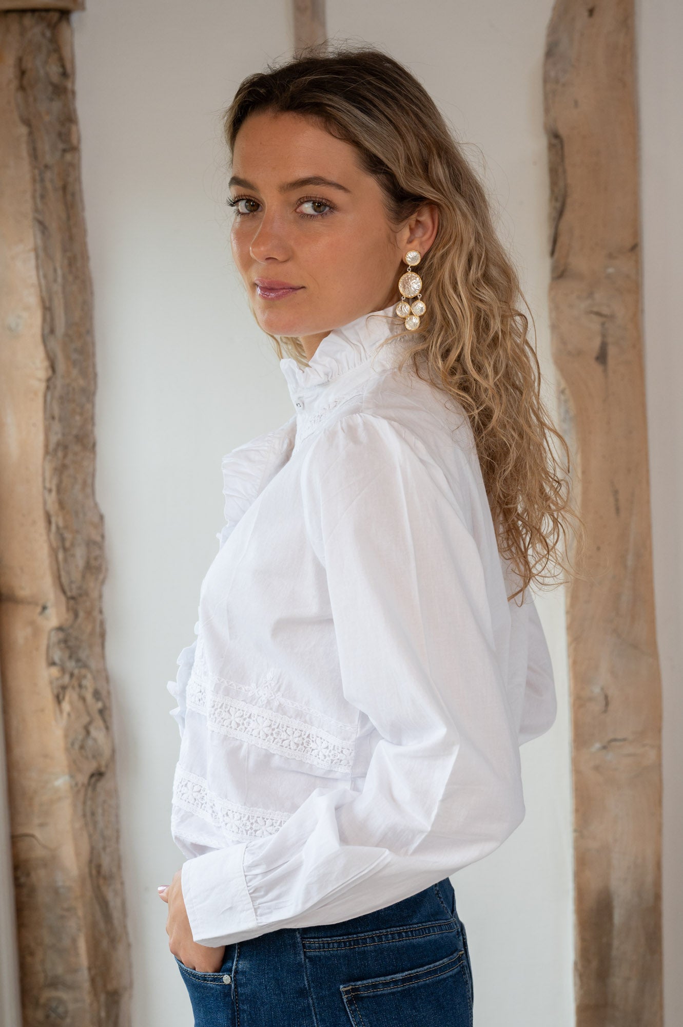 Pretty cotton shirt with a slub in the weave, giving her a linen-look...